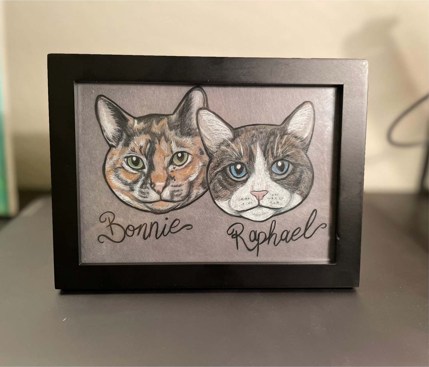 Absolutely loved the drawing Jill did. She did such a wonderful job detailing my dog who just passed away. It came in a frame and you can tell how much time she put into it. I also got keychains that came out perfect, and she also threw in a couple stickers too! Highly recommend seeking her out for any custom pet gifts!